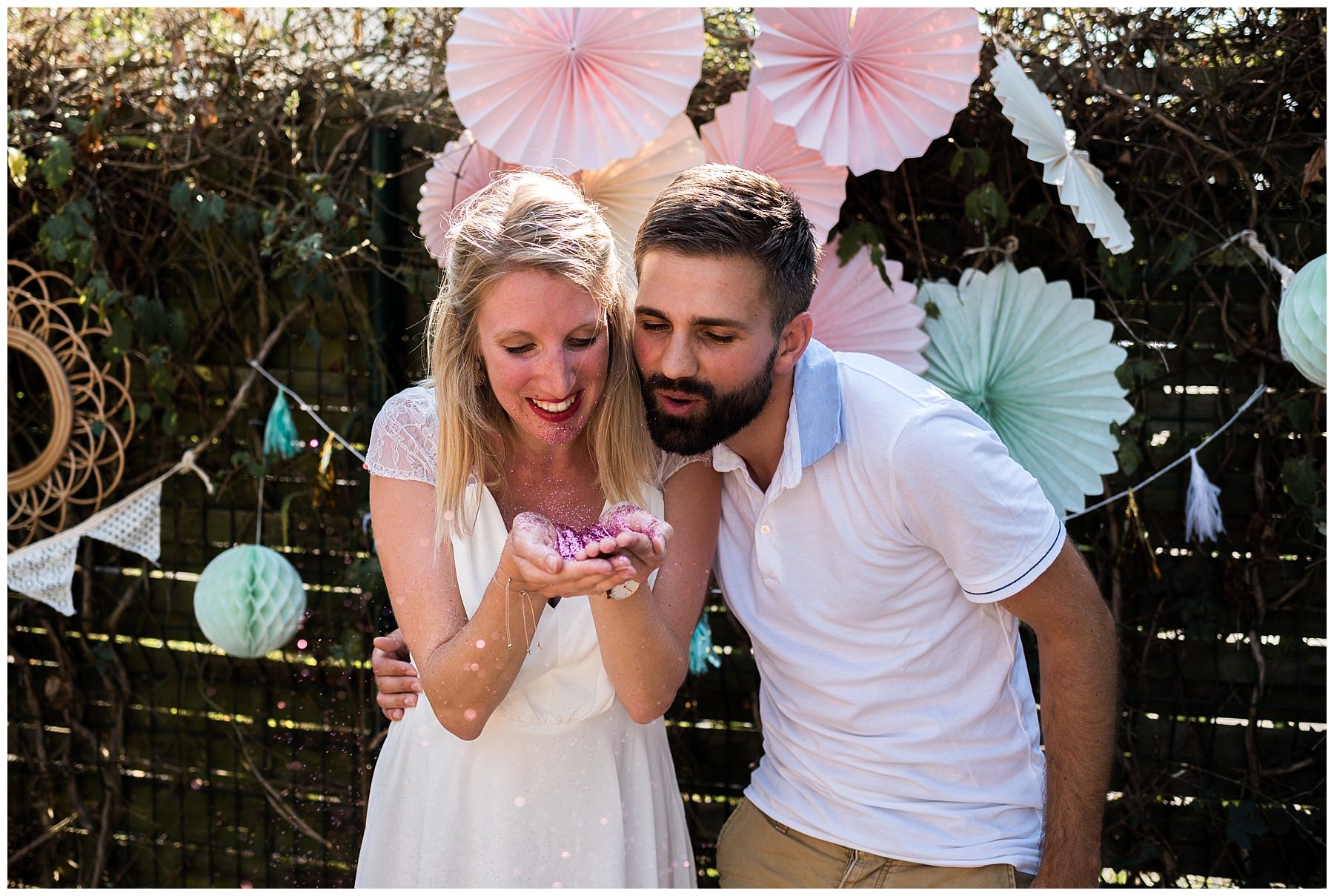 Cécile et Maxime était au courant du sexe et ont choisit de faire découvrir la nouvelle grâce à un ballon géant noir, remplit de confettis. Cécile avait préparer une jolie décoration et de belles gourmandises pour que la fête soit réussie.