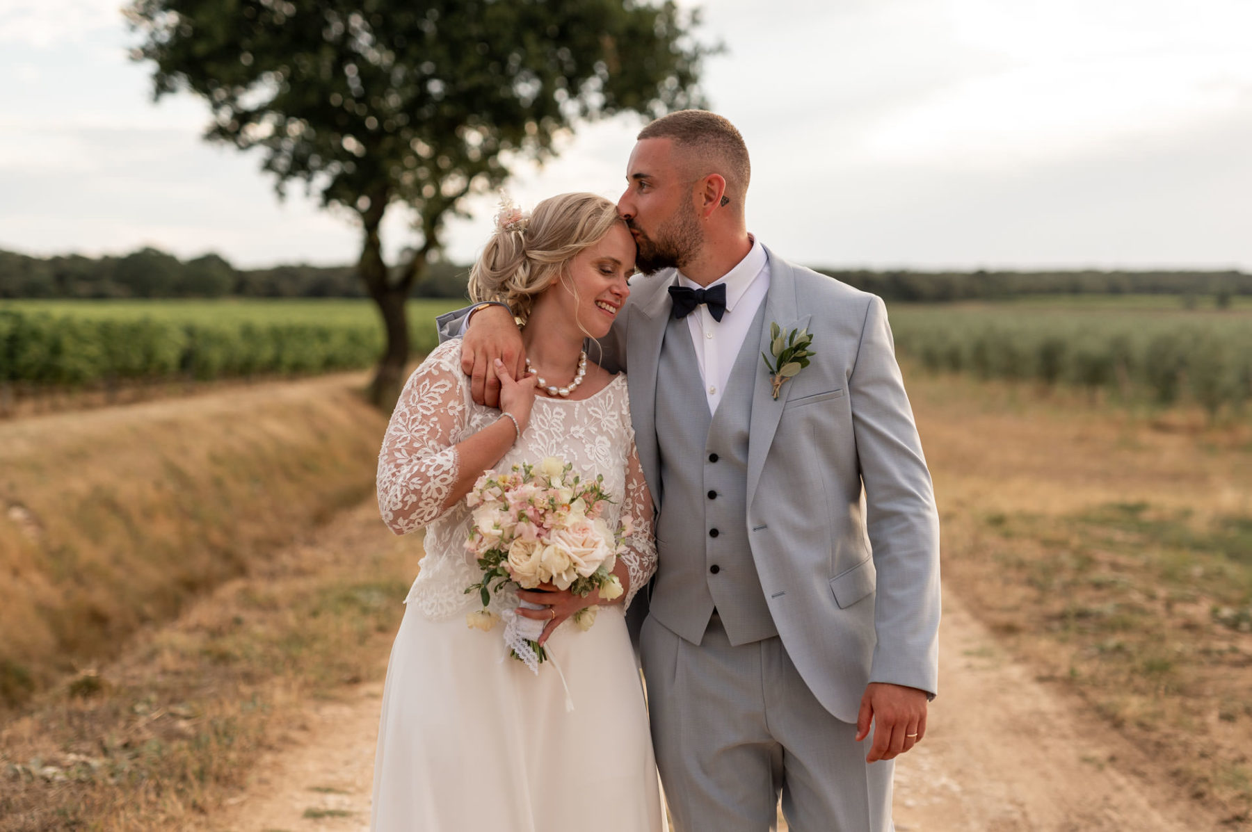 Aujourd’hui, je vous présente un mariage un peu particulier car il s’agit d’un reportage en Provence à Pouzilhac, où j’ai eu la chance d’accompagner Marie et Raph de Dall’k, 2 photographes alsaciens qui se déplacent partout en France. J’ai participé à la première édition de leur mentoring et c’est dans ce cadre, que j’ai assisté à ce mariage. J’en profite pour remercier Marie er Raph, mais également Mourad et Charlotte qui ont accepté ma présence. J’ai adoré couvrir ce reportage dans un joli domaine viticole avec une réception en extérieure.
